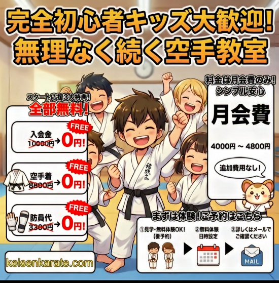 空手着無料進呈・3歳〜karate/入会特典多数/西宮/東灘区/明石/西神南/六甲